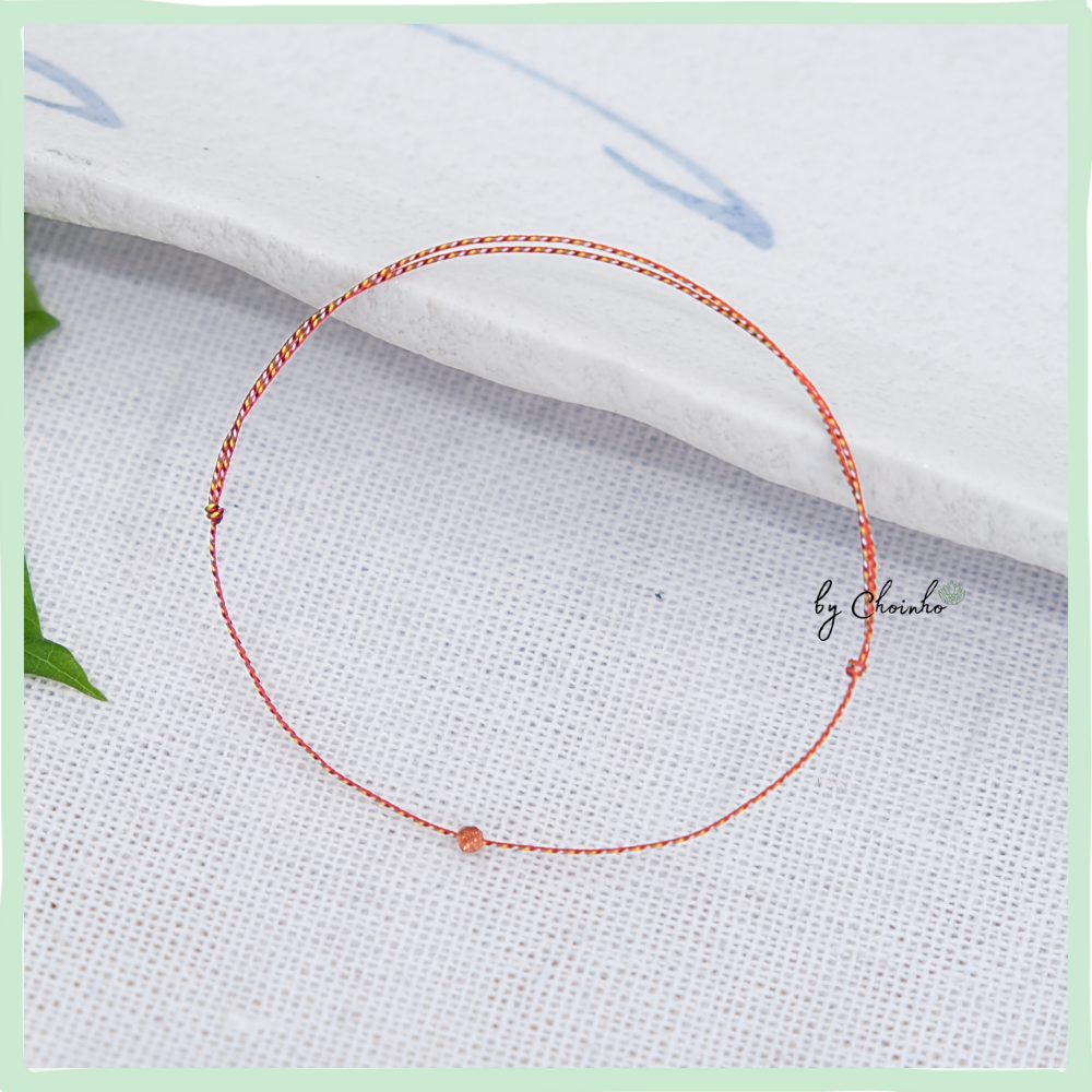 - Chất liệu: Sợi tơ tổng hợp 5 màu với màu đỏ là chủ đạo. Dây dày 0.5mm. Phối hạt kim sa