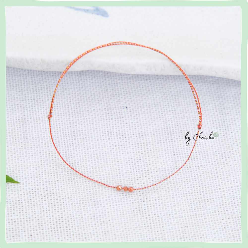 - Chất liệu: Sợi tơ tổng hợp 5 màu với màu đỏ là chủ đạo. Dây dày 0.5mm. Phối 3 hạt kim sa nâu