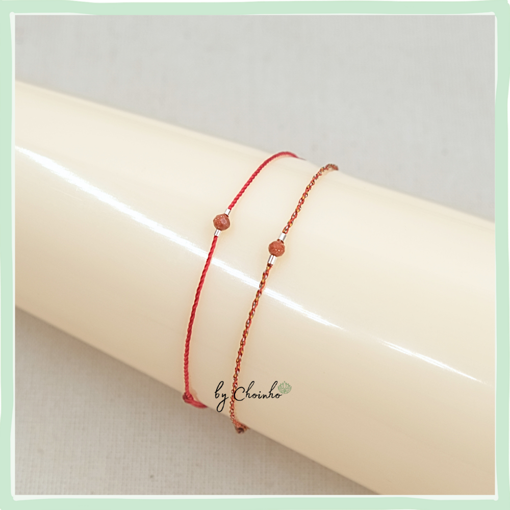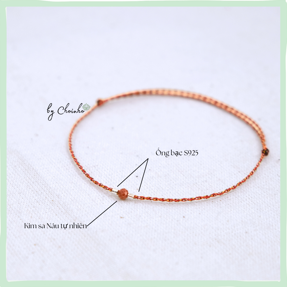 Vòng tay ngũ sắc phối kim sa nâu và ống bạc | dây đỏ dày 0,5mm hạt kim sa nâu ống bạc | freesize mọi cổ tay | Chồi NhỏVòng tay ngũ sắc phối kim sa nâu và ống bạc | dây đỏ dày 0,5mm hạt kim sa nâu ống bạc | freesize mọi cổ tay | Chồi Nhỏ