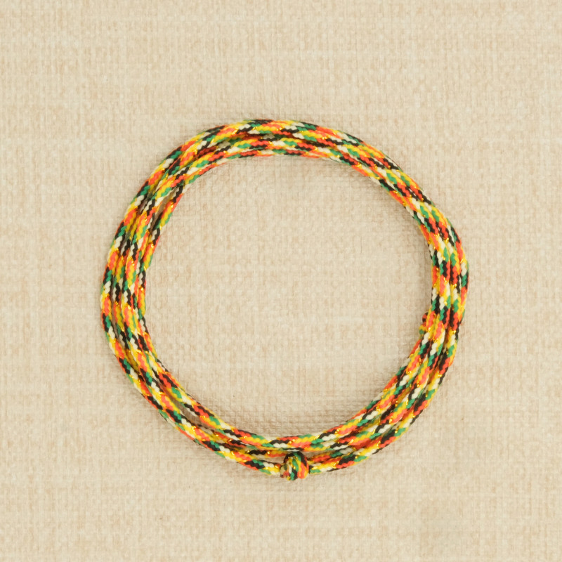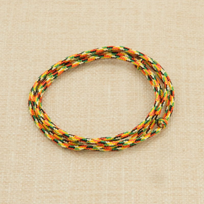 Chất liệu: dây ngũ sắc sợi tổng hợp dày 2.0mm màu vàng kim, thiết kế kiểu quấn